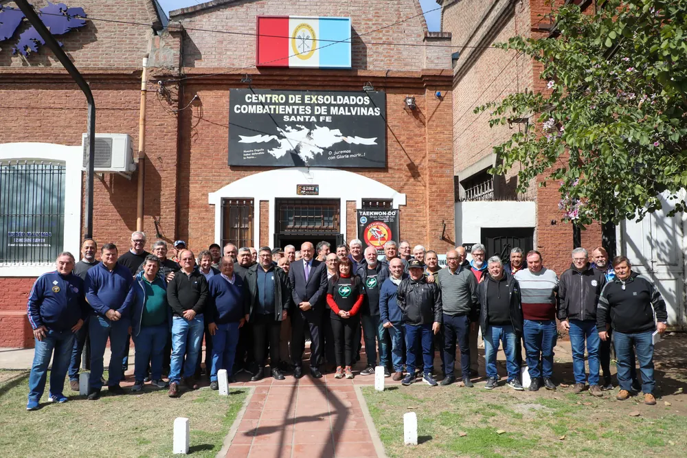 El gobernador de la provincia de Santa Fe, Omar Perotti, participó este martes de un encuentro con la Federación de Veteranos de Guerras de Malvinas de Santa Fe, quienes recibirán parte de lo obtenido en las subastas de bienes decomisados al narcotráfico realizadas por la Agencia Provincial de Registro, Administración y Destino de Bienes y Derechos Patrimoniales (APRAD), dependiente de Ministerio de Gobierno, Justicia y Derechos Humanos, para la realización de diferentes actividades.