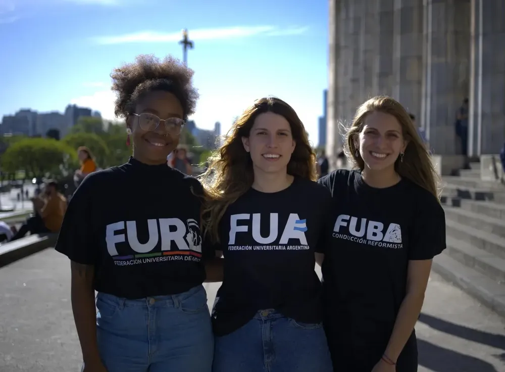 Integrantes de la FUA (Federación Universitaria Argentina) ayer se reunieron en las escalinatas de la Facultad de Derecho de la Universidad de Buenos Aires, para manifestarse contra la educación arancelada, la que propone Javier Milei.